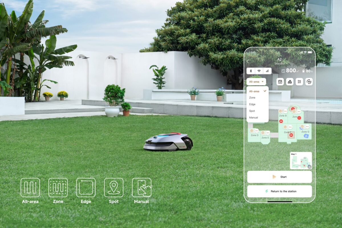 A2 siūlo 5 skirtingus pjovimo rėžimus: visos ploto pjovimą, atskirų zonų pjovimą, pakraščių pjovimą, "nurodytos vietos" pjovimą ir pjovimą valdant robotą pačiam.