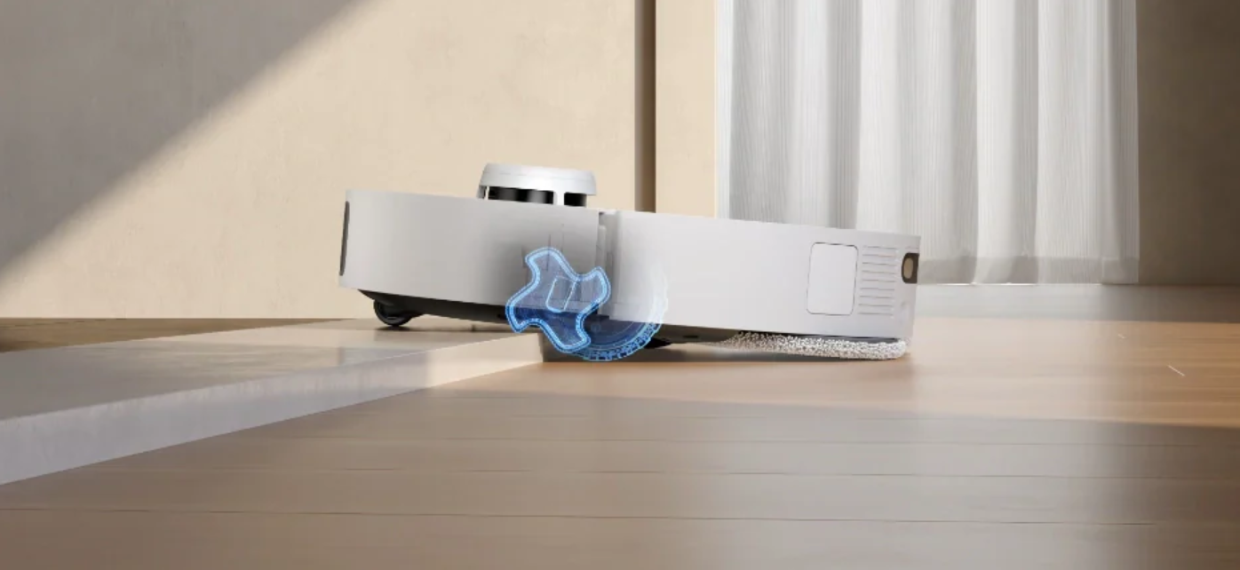 - Įtraukiamas LiDAR bokštelis: „VersaLift DToF“ lazeris nusileidžia į korpusą, sumažindamas roboto aukštį iki ~8,9 cm, kad šis palįstų po žemais baldais.