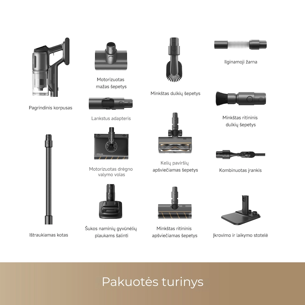 - Maksimali rinkos galia: net 330 AW siurbimo galia ir 150 000 aps./min variklis – galingiausias „Dreame“ siurbimas giliausiam valymui.