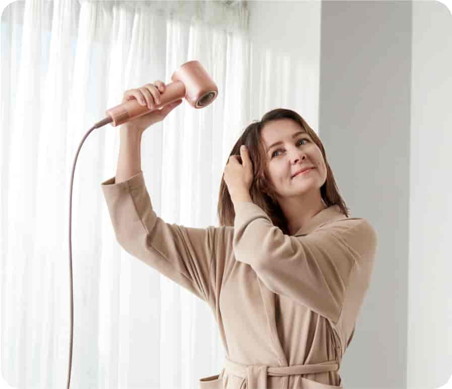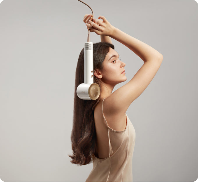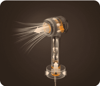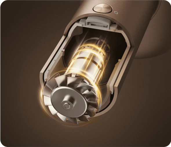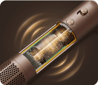 Galingas bešepetėlis variklis su optimizuota vertikalia konstrukcija užtikrina stiprų oro srautą, skleisdamas mažiau nei 58 dB triukšmą. Džiovinkite plaukus ir girdėkite kas vyksta aplinkui ir mėgaukitės malonesniu plaukų džiovinimu.