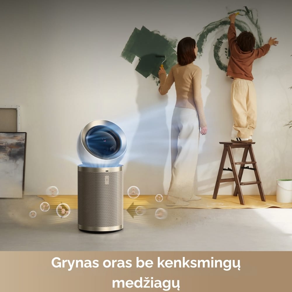- Daugiapakopė filtracija: priešfiltris, HEPA ir aktyviosios anglies elementai padeda sulaikyti smulkias daleles (pvz., PM2.5), kvapus ir LOJ.