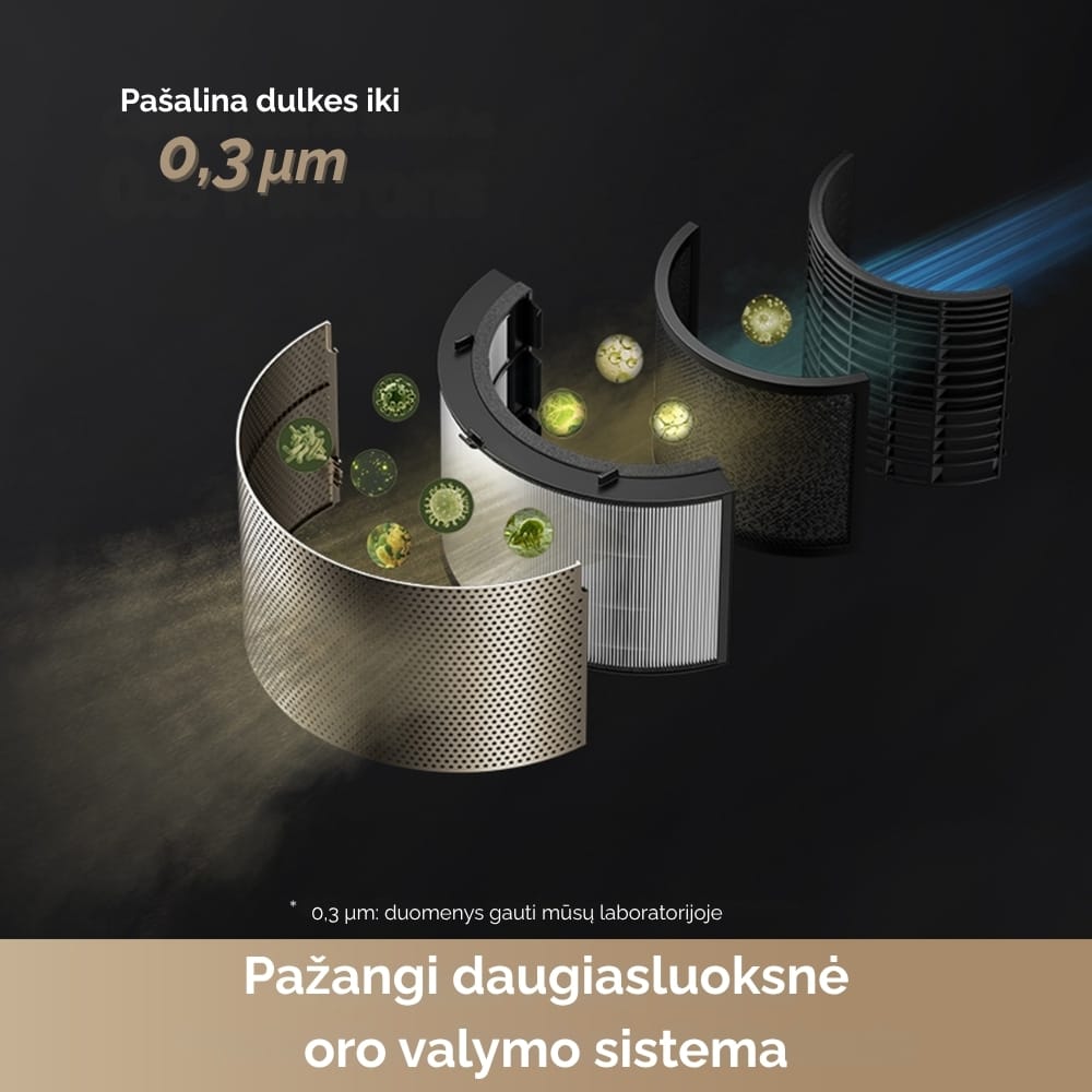 - Giluminis valymas: sulaiko iki 14 tipų oro teršalų (pvz., PM2.5, žiedadulkes, dulkių erkes) ir ženkliai pagerina vidaus oro kokybę. :contentReference[oaicite:2]{index=2}