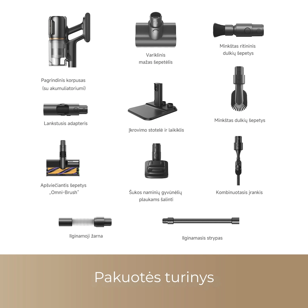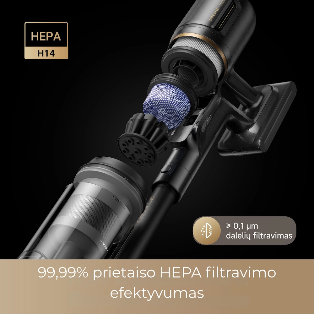 - Maksimali rinkos galia: net 330 AW siurbimo galia ir 150 000 aps./min variklis – galingiausias „Dreame“ siurbimas giliausiam valymui.